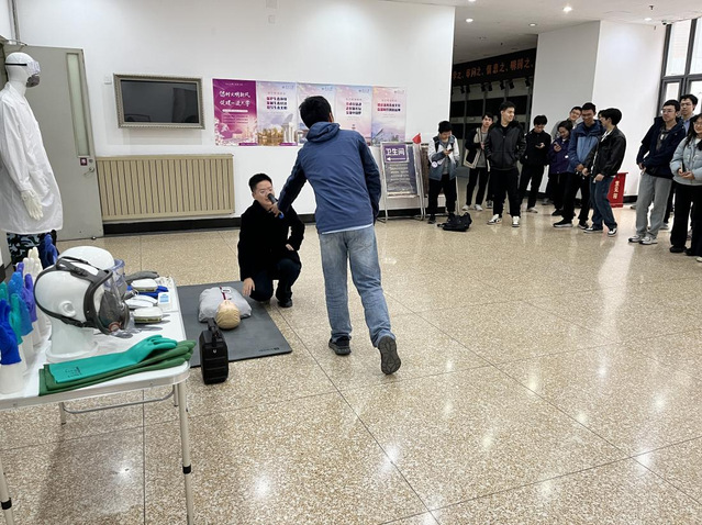 在学校综合安全教育实训基地,实验室设备处老师为同学们开展了一场内容丰富、注重实效的安全教育实训活动。实训内容从实验服的穿着到防护用品的使用,紧密结合成人直播 学生学习、科研和生活的实际特点,涵盖了实验室用电安全、危化品安全、紧急避险等各方面。医成人直播崔建林老师悉心安排了急救技能讲授环节。他向同学们讲授了心肺复苏急救中畅通气道、人工呼吸、人工胸外按压的原理和操作规程,同时,针对实验室中常见的外伤、烧烫伤、肢体骨折等意外伤害情况,崔老师详细讲解了施救方法,使同学们受益匪浅。