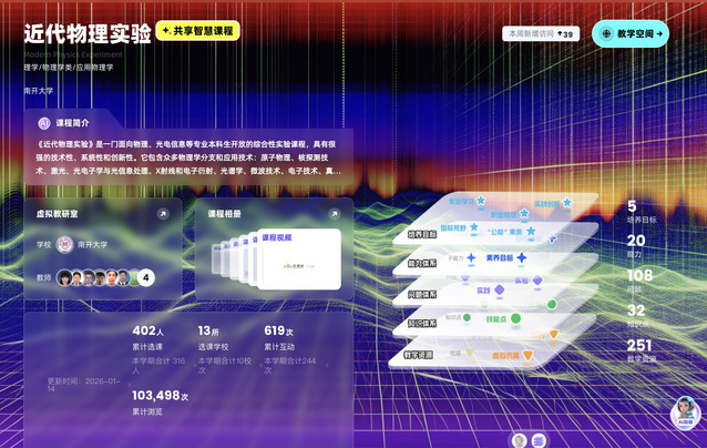 近日,教育部教育技术与资源发展中心公布2025年教师人工智能应用案例征集结果,由我院教师陈靖主持建设的《近代物理实验》案例经省级和国家级推荐,成功入选高等教育类应用案例。
